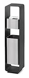 Blomus Standing Ashtray With Wastebin|6522865228 Features: -Material: Stainless steel matt, polished, black anodized aluminum. Includes: -Can be fixed to the ground, includes waste bin. Color/Finish: -Color: Black. Dimensions: -Dimensions: 33'' H x 5.7'' W x 5.7'' D. The ashtray with waste bin is held in place by a black anodised aluminium frame. It is suitable for outdoor use by restaurants and businesses. The standing ashtray/waste bin can also be securely fixed to the ground.