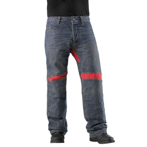 #Don't be fooled, the new Victory Pant has all the manners of an ambassador but the morals of a pirate. High-performance features with pure moto styling combine to form the epitome of street riding pants. The durable denim chassis, Aramid® reinforced knees and hips and breathable ribbed expansion panels are blended specifically for an aggressive riding position. The fit is loose, but the styling is tight. Available with black or red expansion panels. Durable denim chassis Abrasion resistant aramid reinforced knees Abrasion resistant aramid reinforced hips Breathable ribbed expansion panels Icon loose fit pattern