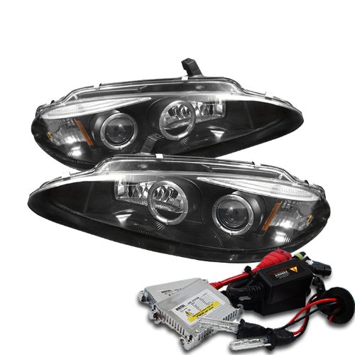 High Performance Xenon HID Dodge Intrepid Halo Eyebrow ( Replaceable Eyebrow Bulbs ) Projector Headlights with Premium Ballast - Black with 8000K Crystal Blue HID