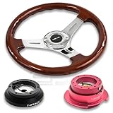 NRG-SRK-100H+0151CH+250PK, NRG Innovations 13" 330mm Deep Dish Style Wood Grain Silver Spokes Racing Steering Wheel Combo with 6 Hole Short Hub Adapter with Gen 2.5 Pink Quick Release Kit SRK-100H