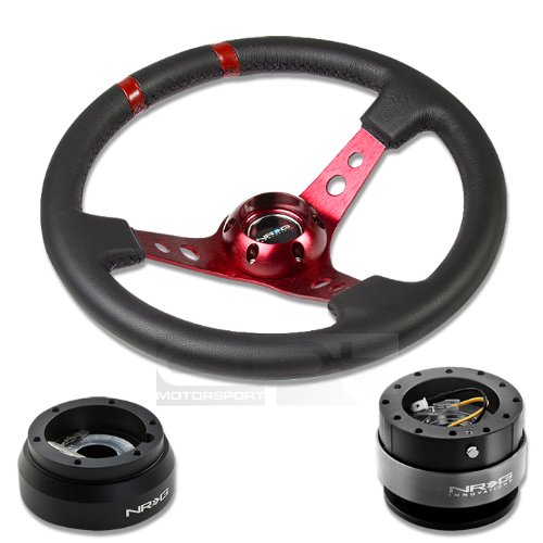 NRG-SRK-181H+016R-RD+200BK, NRG Innovations 13.78" 350mm 3" Deep Dish Style Black Leather Red Center Marking Red Spokes Racing Steering Wheel Combo with 6 Hole Short Hub Adapter with Gen 2.0 Black Quick Release Kit SRK-181H You can try to find the full description and product details.