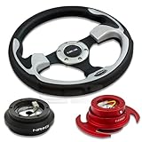 | ✚✚✚ NRG-SRK-190H+001SL+650RD, NRG Innovations 12.5" 320mm Black Leather Silver Trim Racing Steering Wheel Combo with 6 Hole Short Hub Adapter with Gen 3.0 with Handle Red Quick Release Kit SRK-190H NRG Quick Release features many options that conventional ball-locking quick release system do not. It is specially engineered with raised sections to prevent the scratching and stretching of the hub while a self locking feature adds increased safety and functionality. Features racing styled for added style and look. Each unit is made from the highest quality aircraft grade aluminum and is anodized for maximum durability and finish.